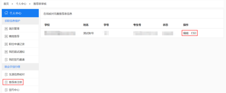 登录就业系统,进入“推荐表注册”菜单,填写信息后提交学院审核。