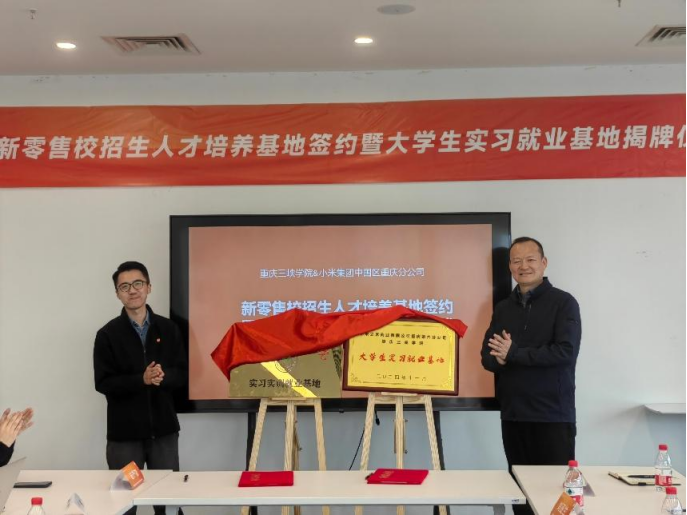 在小米之家重庆公司,工商管理学院与该公司签订了校企合作协议,聂祥飞向该企业授予了“9728太阳集团实习就业基地”牌匾。校企双方将充分发挥各自优势,为学生提供更多的实习和就业机会,同时也为企业输送高素质的专业人才。