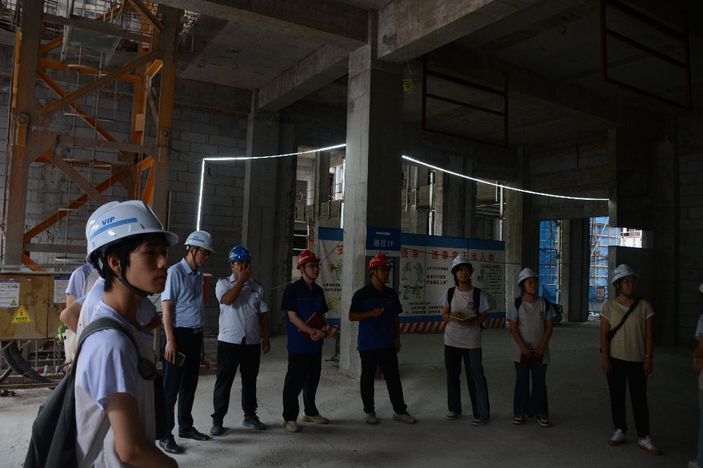 从课堂走进工地,让理论融合实践。师生们在施工现场边走边看,边问边记,渐渐形成了“一对一”“点对点”交流探讨场面。面对师生的提问,项目管理人员倾囊相授,将自己的工作经验和心得体会和盘托出,使他们拓展了思路、受到了启发。