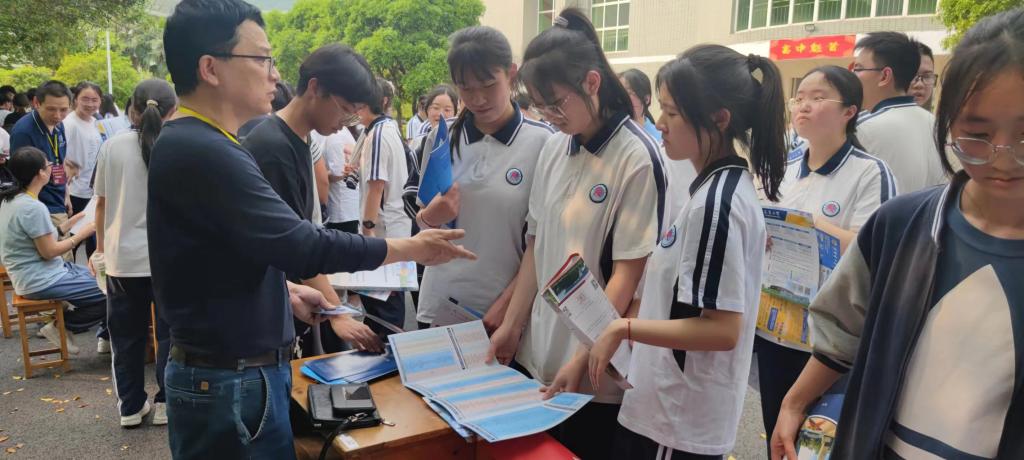 巡展过程中,前来我校展台咨询的高三学生络绎不绝,招生宣传资料供不应求。两位老师向学生介绍我校基本情况、招生政策和专业特色,点对点与学生交流、答疑。